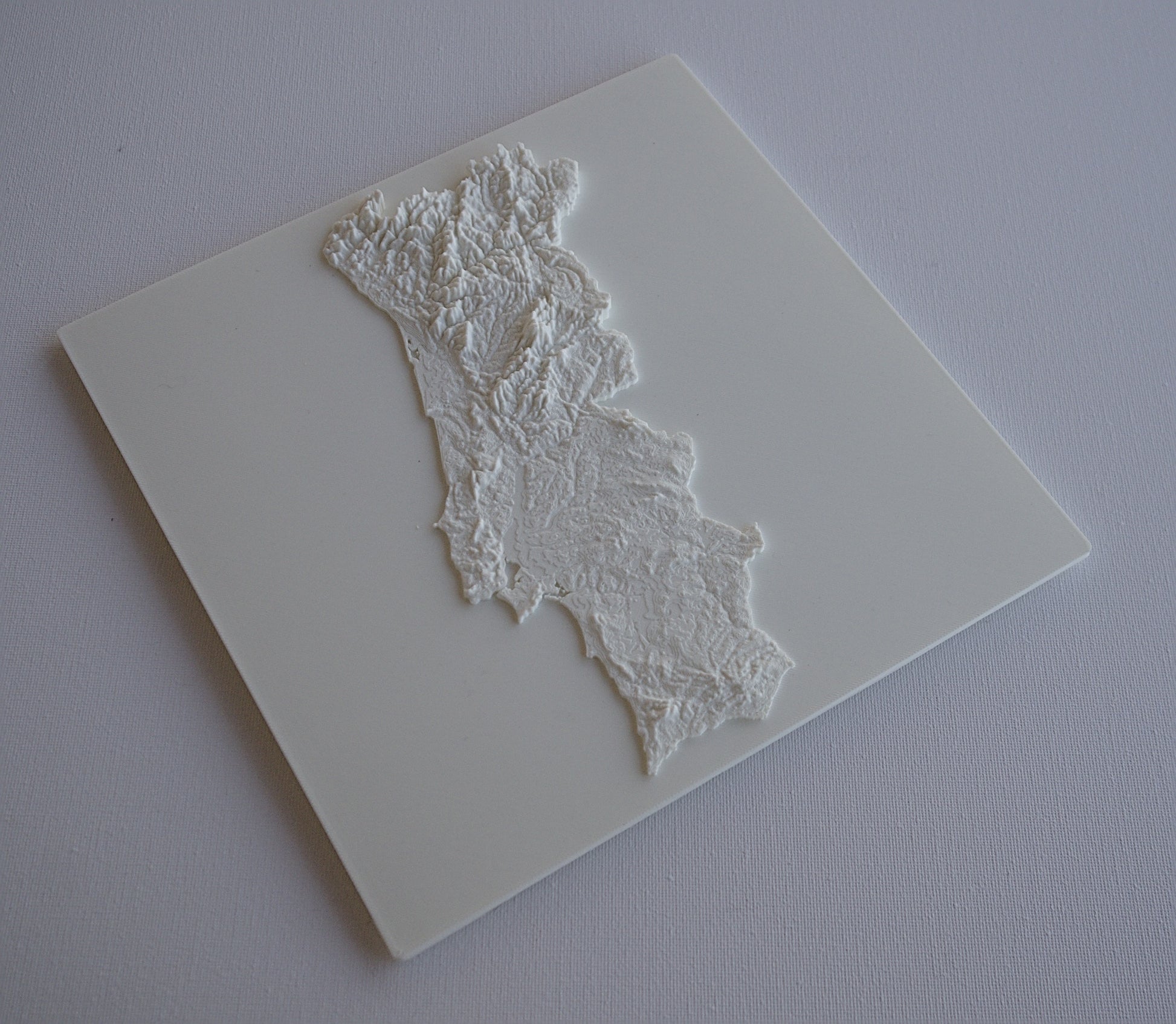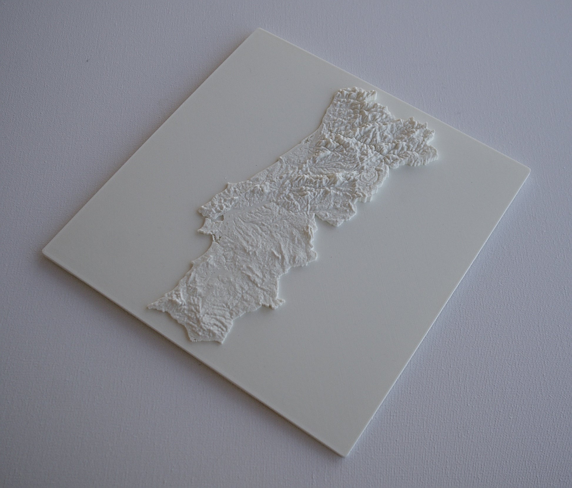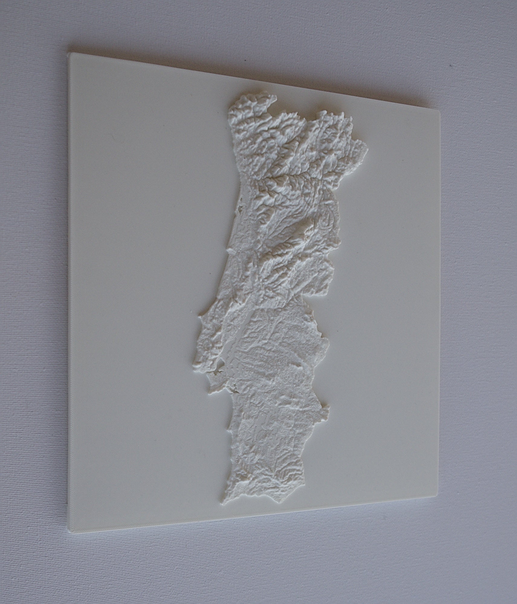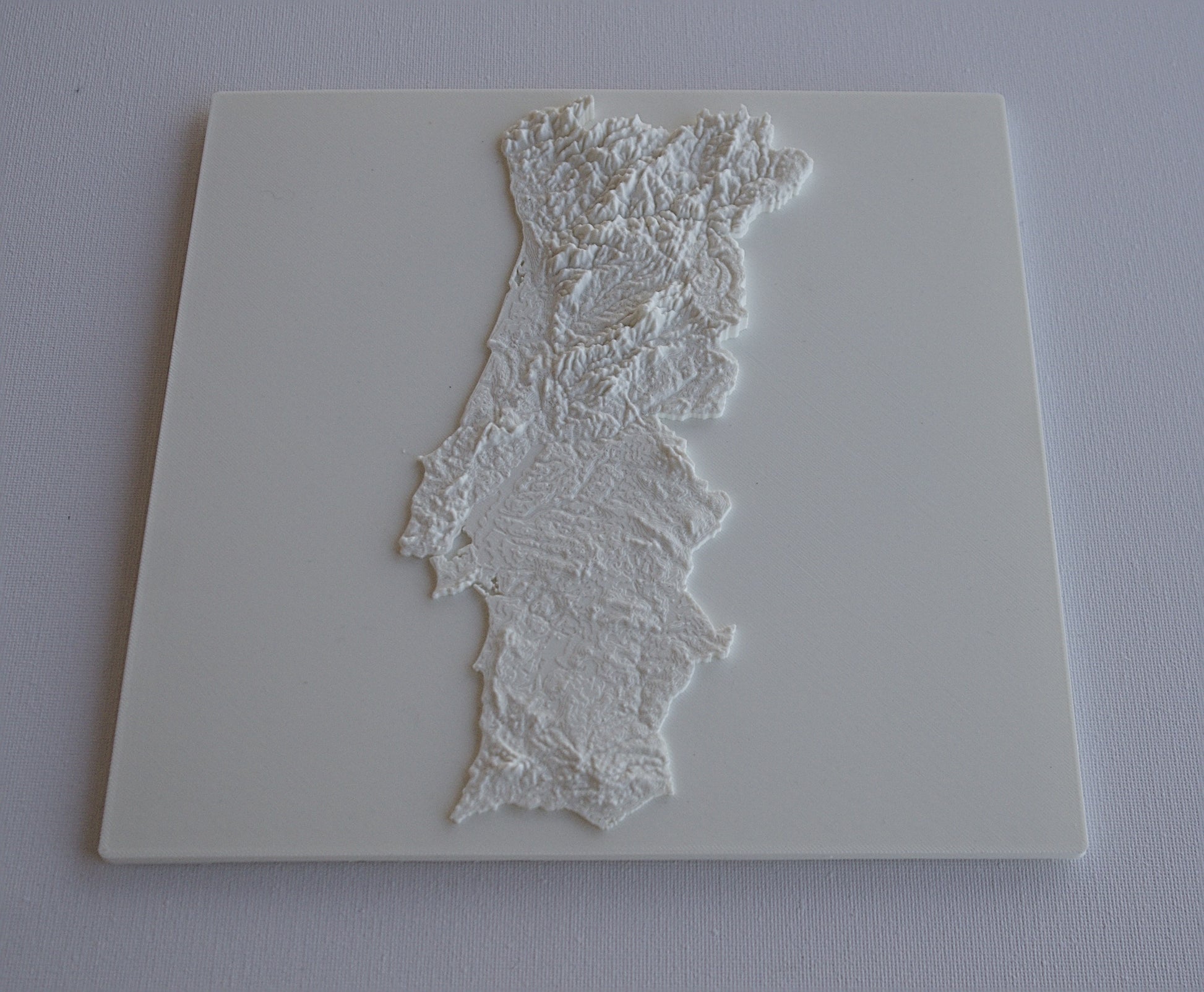 3D printed wall hanging geographical model of Portugal with a custom attachment for easy wall mounting.