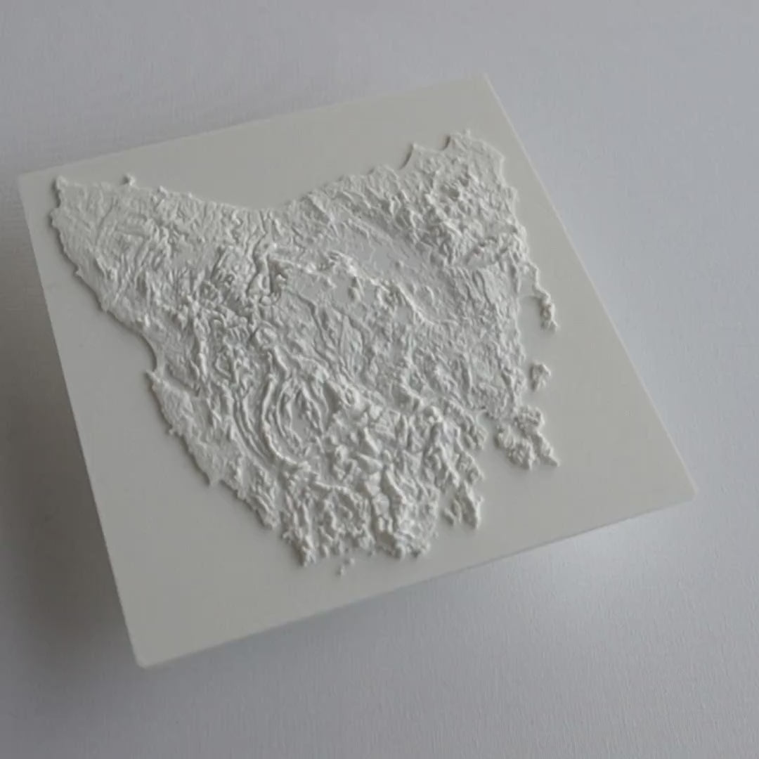 Bring the raw beauty of Tasmania into your space with our handcrafted 3D relief maps. Each piece captures the island’s rugged mountains, dense rainforests, and dramatic coastlines, designed in a minimalist monochromatic style to emphasize its untamed landscapes. A striking tribute to one of the world’s last wild frontiers.